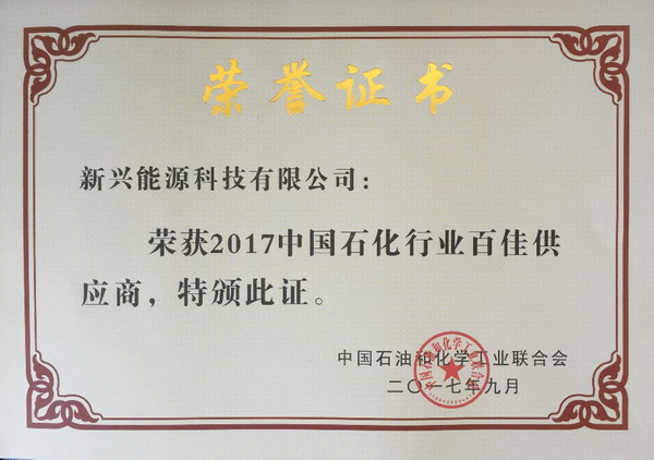 新兴能源科技有限公司荣获“中国石化行业百佳供应商”
