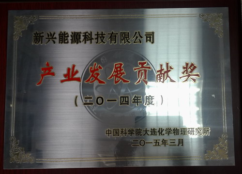 在2015年3月12日举行的中国科学院大连化学物理研究所2015年工作会议上,新兴能源科技有限公司荣获大连化物所冠名奖之“产业发展贡献奖”,这已是新兴公司连续五年蝉联该奖项。