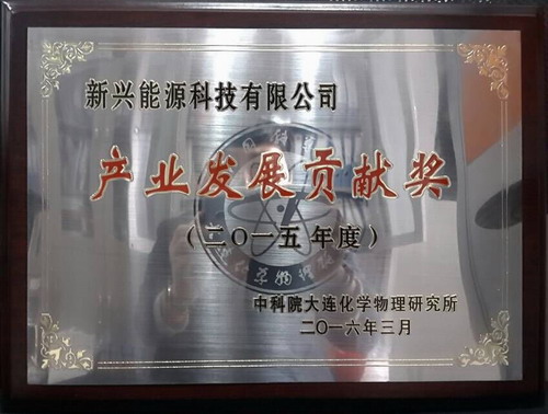 在2016年3月1日举行的中国科学院大连化学物理研究所2016年工作会议上,新兴能源科技有限公司荣获大连化物所冠名奖之“产业发展贡献奖”,这已是新兴公司连续六年蝉联该奖项。