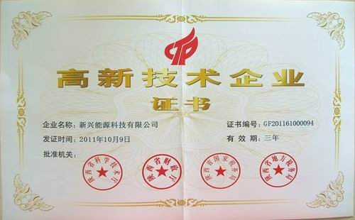 新兴能源科技有限公司再次荣获“高新技术企业”称号(图)