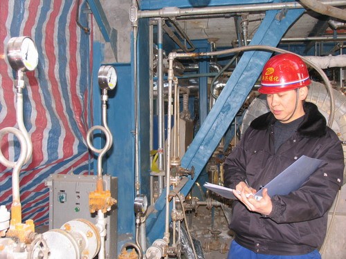 2005年12月14日,DMTO工业化试验现场工程师在检查输水器装置