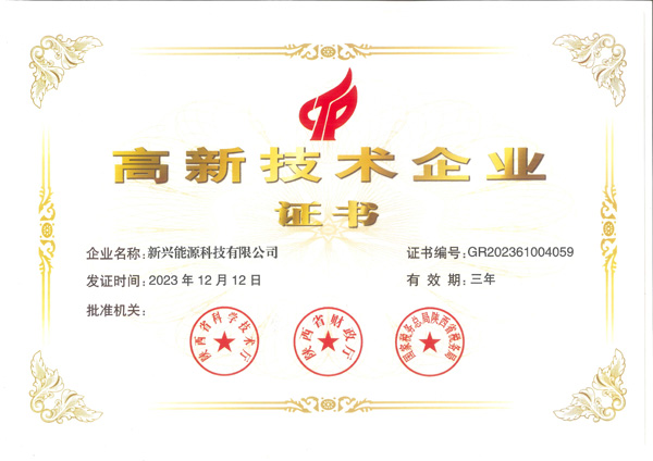 近日,新兴能源科技有限公司收到由陕西省科学技术厅、陕西省省财政厅、国家税务总局陕西省税务局联合下发的《高新技术企业证书》,发证时间为2023年12月12日,有效期三年。根据《中华人民共和国企业所得税法》以及国家对高新技术企业的相关税收规定,高新技术企业认定后三年内可继续享受关于高新技术企业的税收优惠政策。新兴公司再次通过高新技术企业认定,既是对公司近年技术创新和科研实力的认可,同时也为公司发展提供了良好的外部环境和条件。新兴公司将在今后的发展中,更加重视科技创新,加强科技成果转化,不断提升企业核心竞争力。